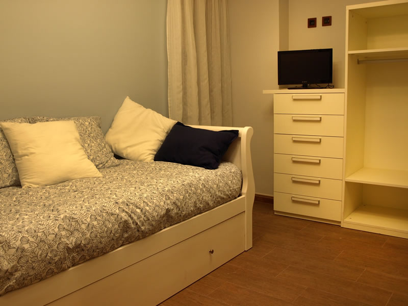 Disponemos de 2 apartamentos individuales, con capacidad de 4 a 6 personas cada uno, los cuales se pueden alquilar de forma conjunta. Cada apartamento contiene una cocina completa y menaje de todo tipo como puede ser batidora, exprimidor, microondas etc. También disponen de cabina hidromasaje, juego de toallas para cada persona, secador en ambos baños, tv en todas las habitaciones, aire acondicionado, cuna, colchones viscolasticos en todas las camas incluidos en el sofá cama. Decorados hasta el más mínimo detalle, para que el cliente encuentre la máxima comodidad y se sienta como en casa.